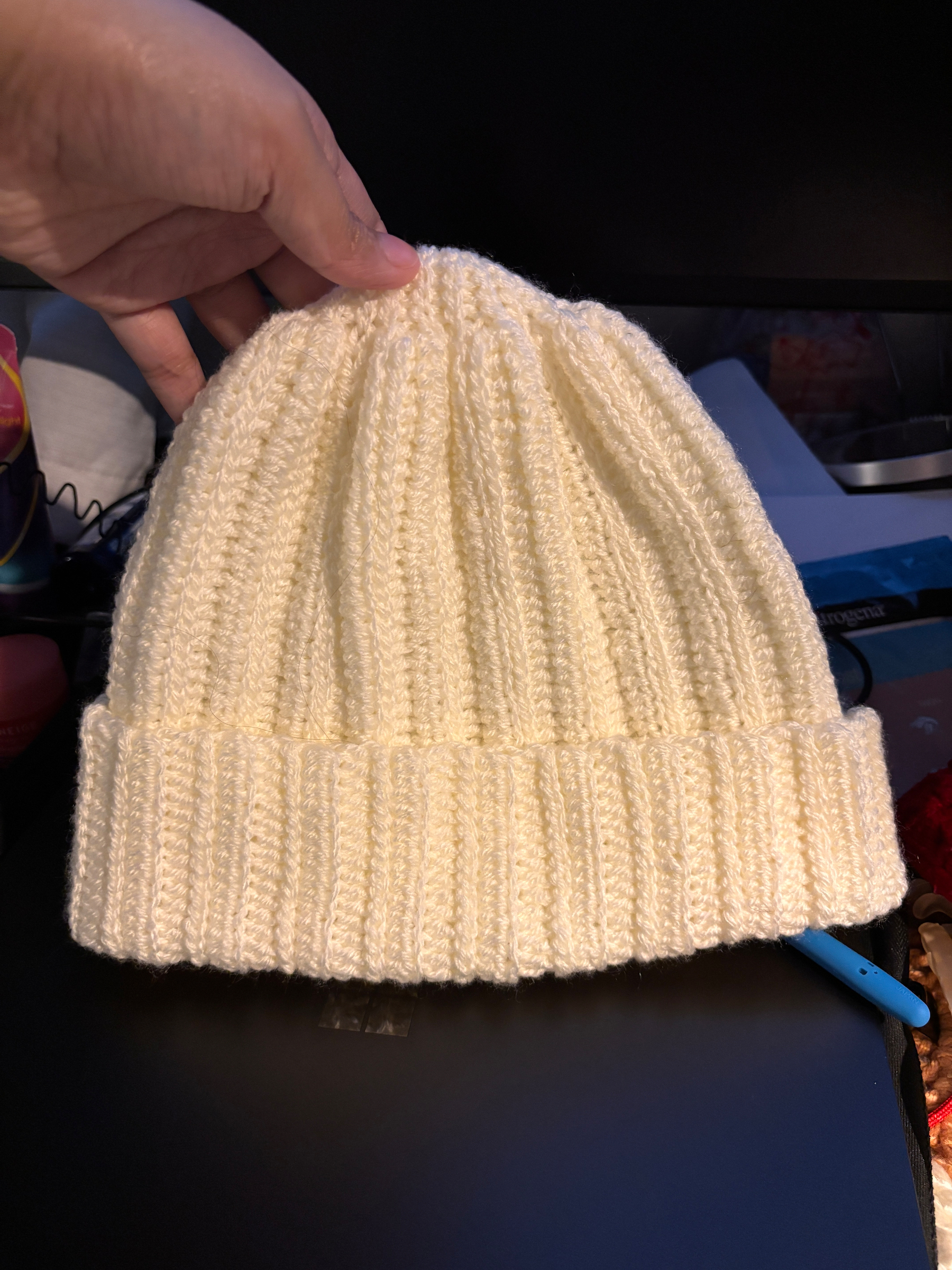 I finally finished my beanie! Just in time for all the snow to come in. It took me a lot longer than I usually would. Mostly because I actually took my time to finish it. It wasn’t a priority, just something I can do at the end of a long day. Back then, my priorities were all over the place. I would procrastinate to the nth and would finish a book or sprint through a project rather than do what actually mattered (aka school or work). In the spirit of trying to change for the better and also not injure myself, this time I managed to stretch out this project in about a week.
