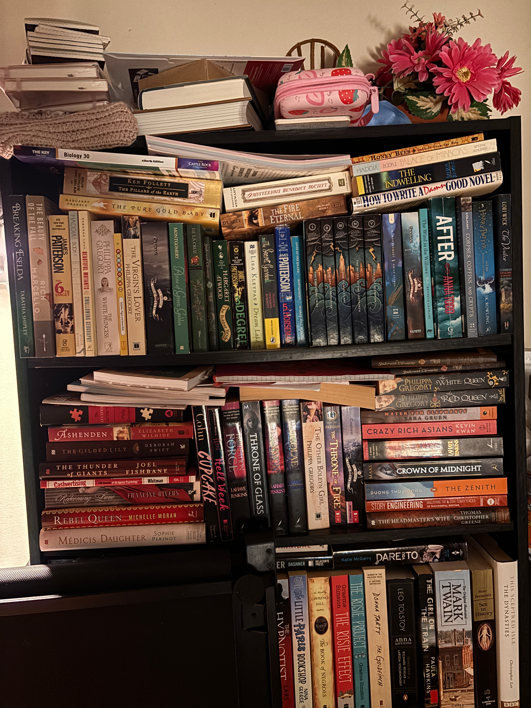 About a quarter of all the physical books I have. I’ve been too into e-books these days because they’re too convenient but I’ve barely touched any physical ones. It doesn’t really help that I’m blind as a bat without my glasses and I can’t make the font size bigger in the books 😂 I’ll still try.