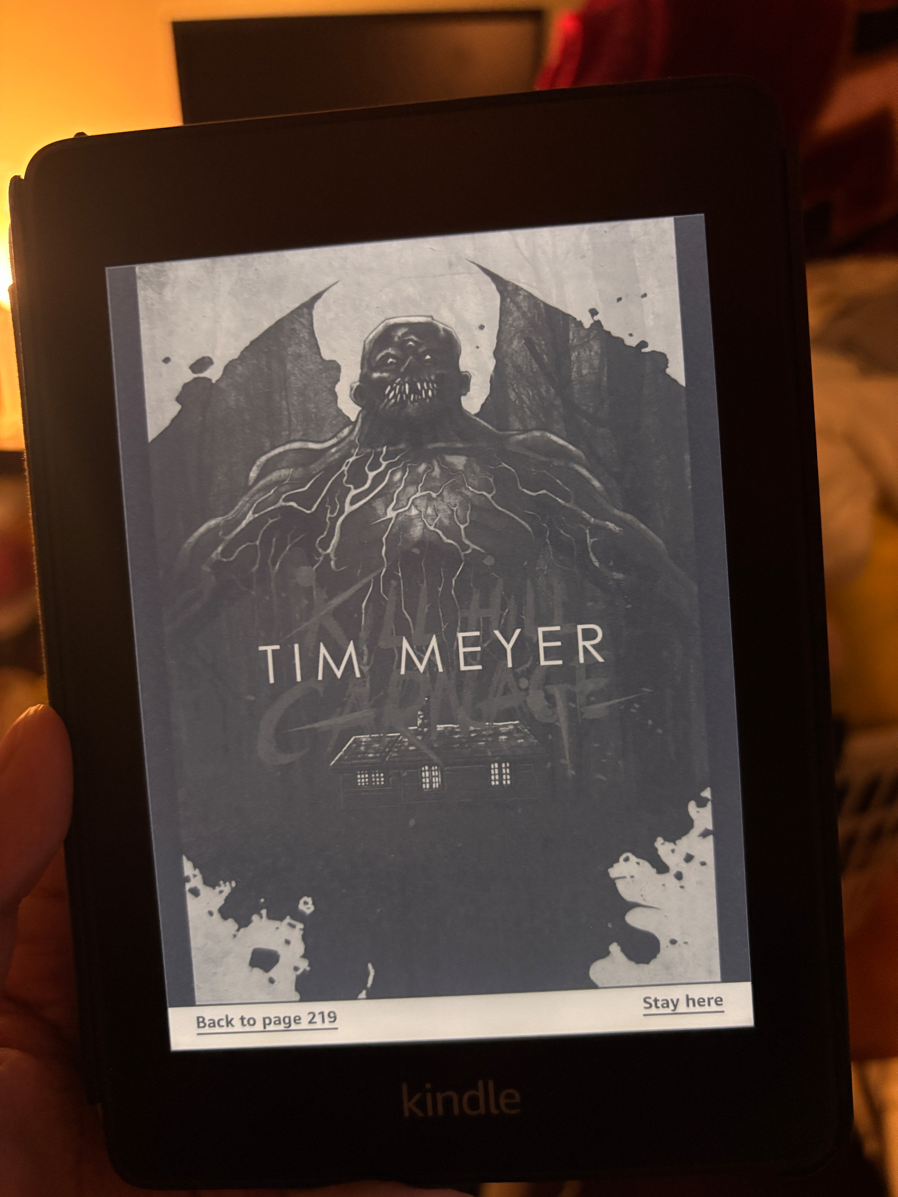 - Books: kill hill carnage by tim meyers. 70% of the way. will read it tonight before bed, yay!