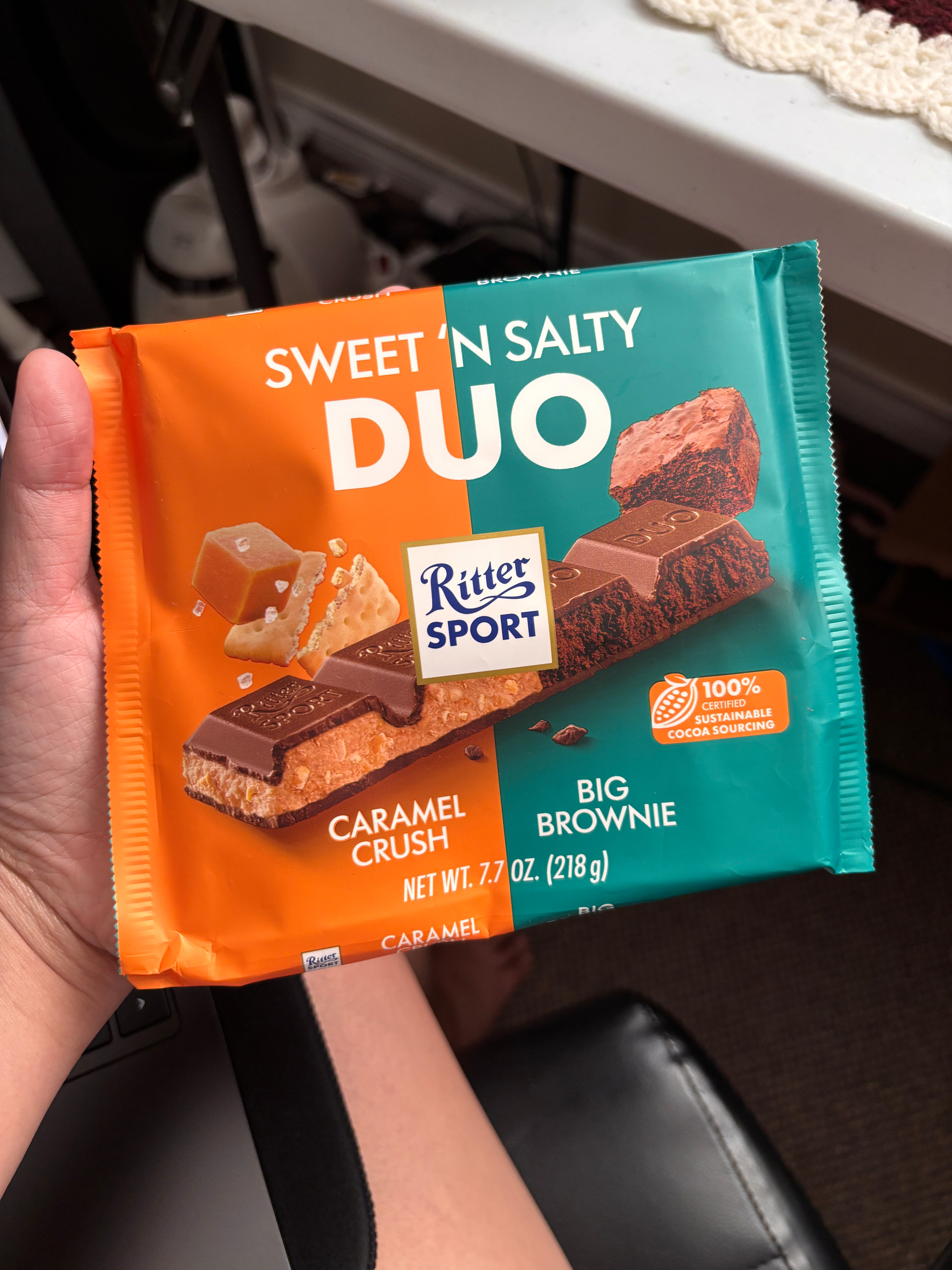 This is so good! If I could stuff my face with it I 100% would but I have to stop myself from inhaling this much sugar 😂 will have to grab some more before the holidays end because I have a feeling this is a seasonal flavor. My second favorite ritter sport would be the pretzel one. Crunchy!